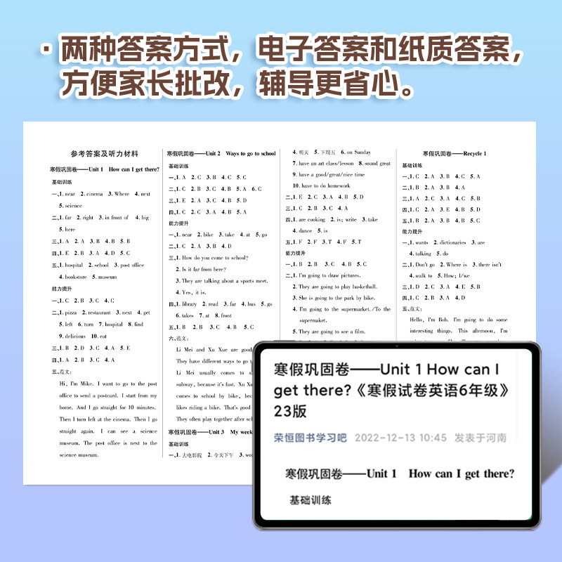 本《寒假作业》全套试卷测试卷涵盖小学一至六年级,分年级编写,紧扣人教版教材,与上下册内容紧密衔接。包含语文、数学、英语(三至六年级)同步练习、黄冈名校真题、期末复习卷及快乐假期实践任务,注重基础知识巩固与能力提升。题目设计科学,题型丰富,难易适中,配有详细答案解析,便于学生自查自纠。同时融入生活化情境,激发学习兴趣,帮助学生在寒假期间温故知新,平稳过渡新学期。适合家长辅导、学生自学及教师参考,是假期高效复习的理想选择。