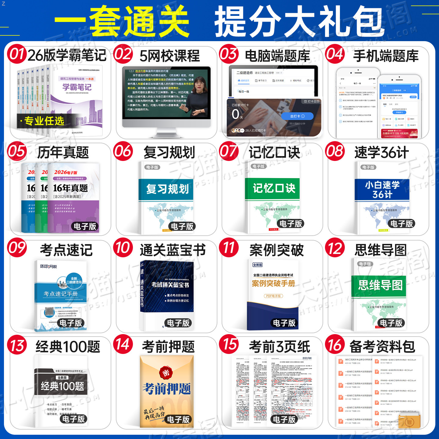 天猫2026年二级建造师考试学霸四色笔记一本通教材书核心母题必刷题历年真题库试卷26二建建筑实务市政机电公路水利法规管理习题集2025