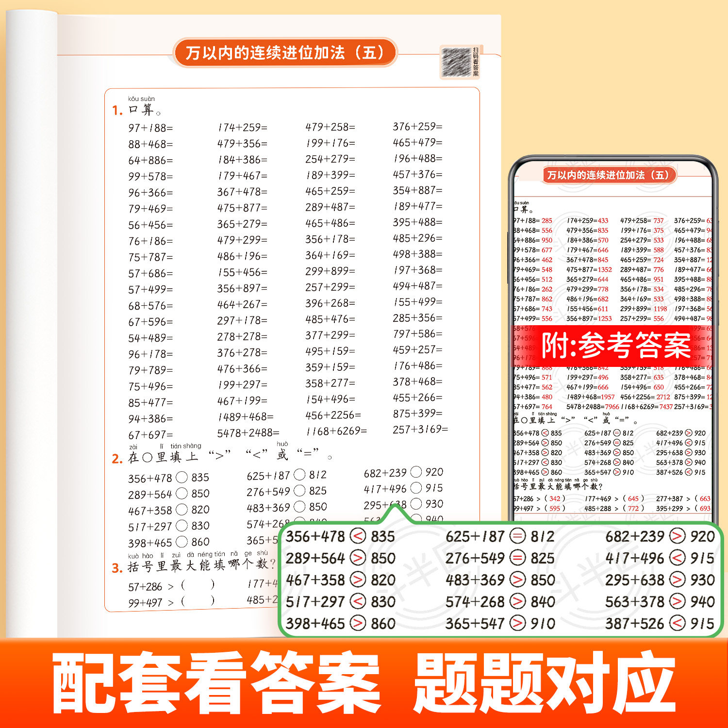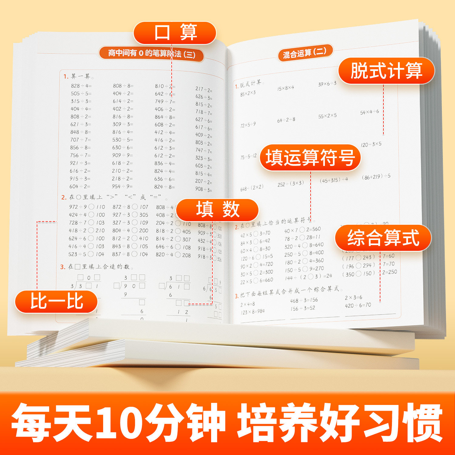 天猫二年级下册口算天天练上册小学一年级1-3三年级数学计算题强化训练口算题卡人教版同步练习题下学期数学应用题思维专项训练题册