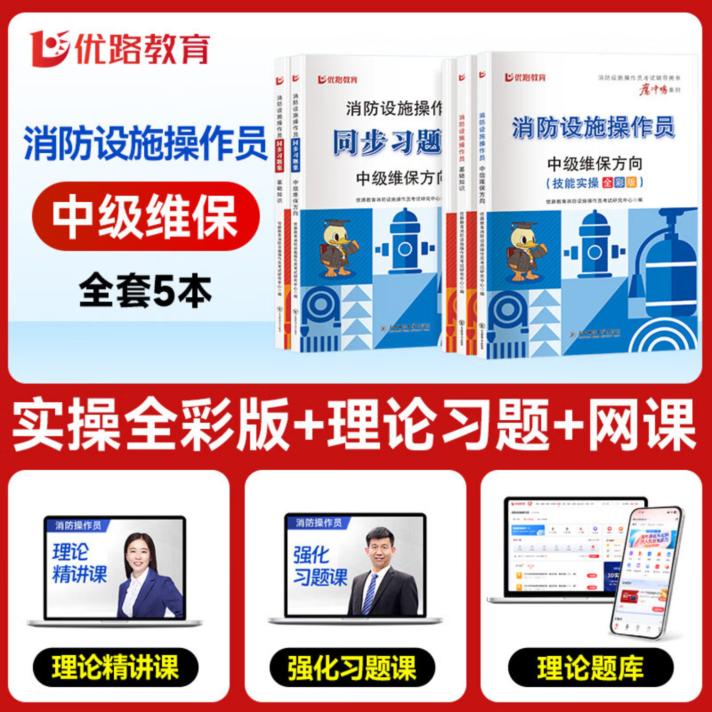 天猫优路教育2025年消防设施操作员考试教材书习题集监控维保中级理论题库基础知识初级证25消防员资格检测维修保养监控员练习刷题试卷