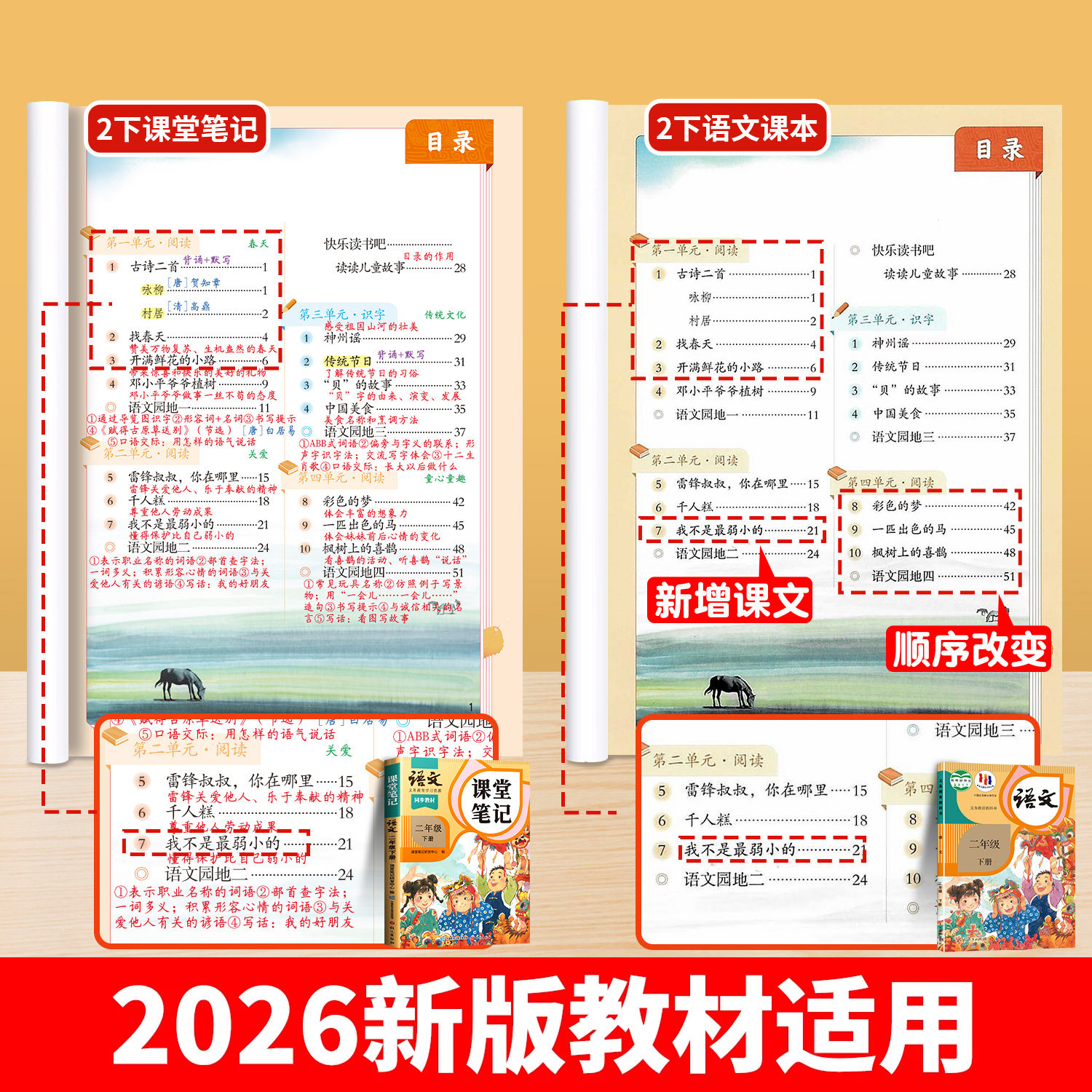 天猫2026春适用二年级下册上册语文课堂笔记人教版同步课本教材辅导资料书斗半匠二下语文书同步解读新版小学学霸笔记教材全解预复习
