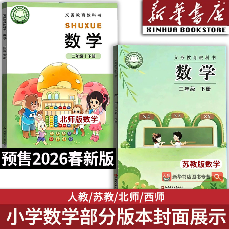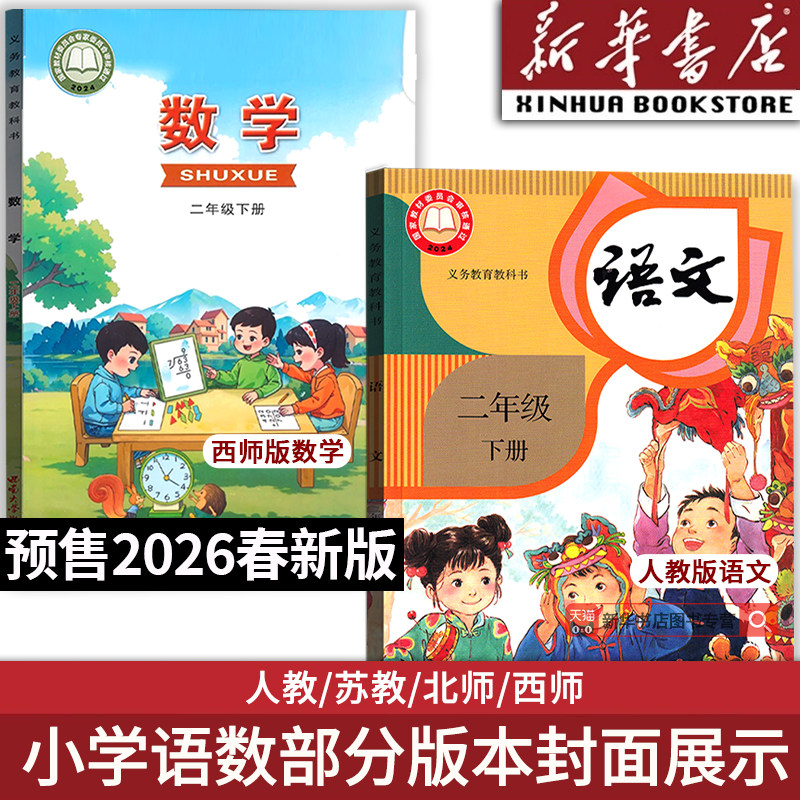 【26春季新版部分现货】2026年使用的小学二年级下册语文、数学、英语全套教材现已部分到货!涵盖人教版、北师大版、苏教版、西师大版等多个主流版本,适用于全国不同地区二年级下学期教学需求。教材内容紧扣新课标,注重基础知识与综合能力培养,语文强化阅读与表达,数学注重思维训练,英语提升听说读写能力,同时配套道德与法治课本,促进学生全面发展。正版印刷,清晰耐用,适合学生日常学习与教师教学参考。现货有限,欢迎家长、老师及教育机构及时选购,助力新学期学习启航!