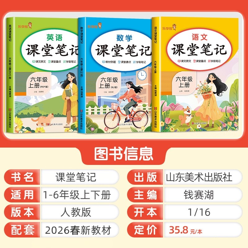 2026乐学熊课堂笔记涵盖小学一至六年级语文、数学、英语全册内容,与人教版教材完全同步,是专为小学生打造的随堂复习与预习神器。笔记系统梳理课本重点、难点和考点,配有清晰的知识框架、例题解析和易错提醒,帮助孩子高效掌握核心知识。每单元设置学习目标、知识归纳和拓展练习,兼顾基础巩固与能力提升。设计简洁明了,重点突出,适合课前预习、课堂笔记补充和课后复习使用。无论是日常学习还是考前冲刺,乐学熊课堂笔记都能助力孩子夯实基础,稳步提升,成为家长信赖、学生喜爱的学习好帮手。
