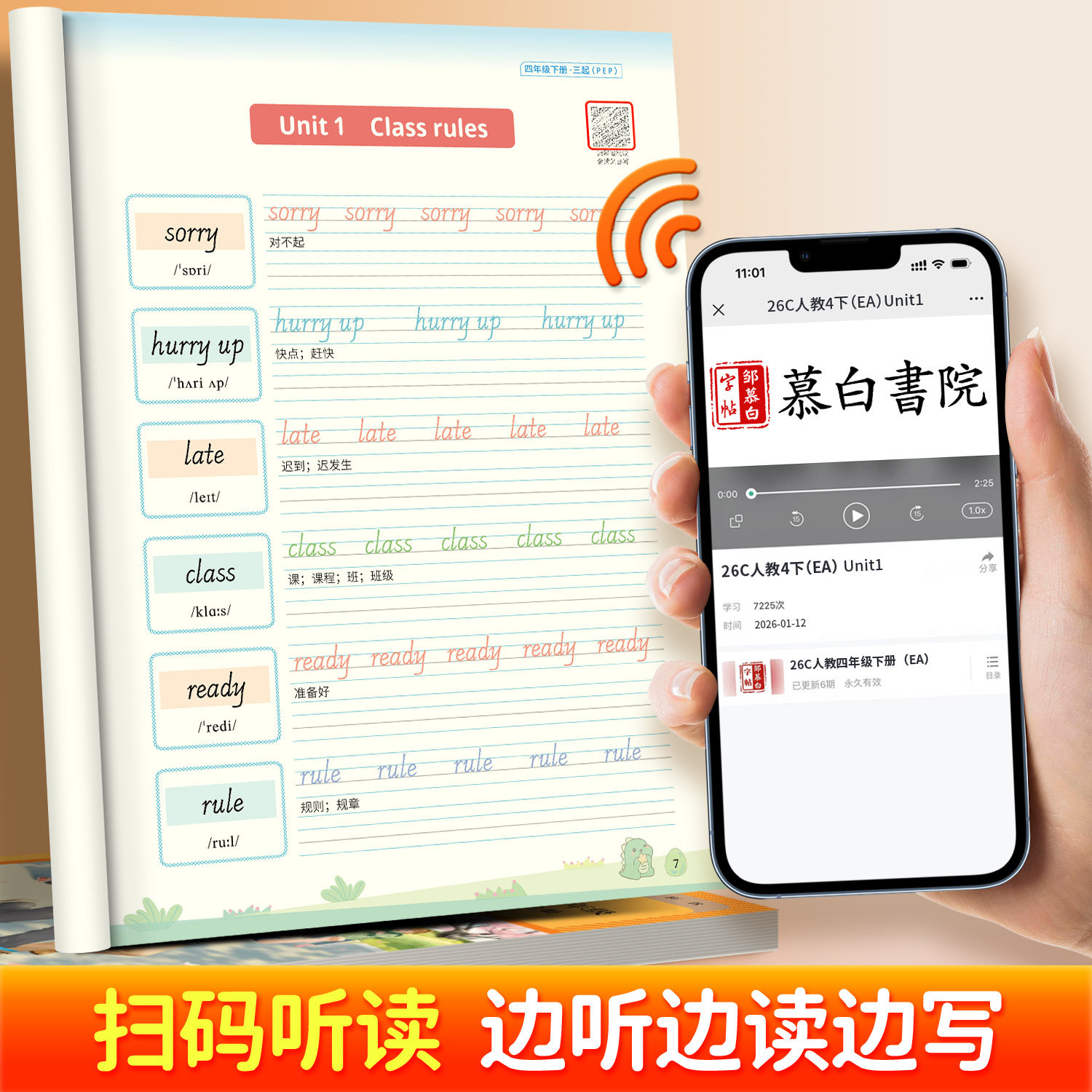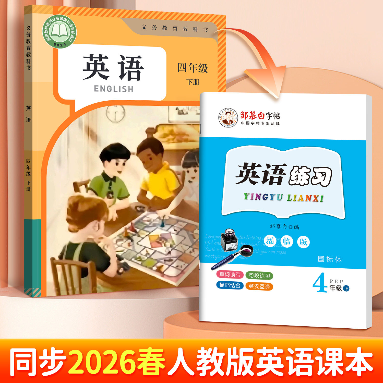 2026春新版邹慕白人教版PEP版国标体英语练字帖,专为小学三至六年级学生设计,同步课本内容,涵盖上下册字母、单词及句型练习。采用标准斜体手写体,字形规范、清晰,符合国标书写要求,帮助学生掌握正确笔顺与书写格式。每日一练设计,循序渐进,强化记忆与书写能力。字帖内页排版合理,留白充足,便于反复临摹。搭配人教版PEP教材,实现学习与练字同步,提升英语书写美观度与学习效率。是小学生夯实英语基础、培养良好书写习惯的实用工具书。