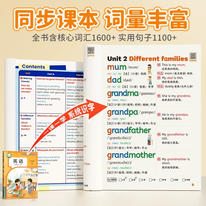 《26新版小学英语单词记背神器汇总表(人教PEP版)》专为三年级起点小学生设计,同步3-6年级新教材内容,涵盖全部核心词汇。本书融合自然拼读法与国际音标,帮助学生见词能读、听音会写。采用艾宾浩斯记忆法科学编排复习计划,有效提升记忆效率,适合零基础入门。表格化汇总清晰直观,便于每日打卡背诵,巩固学习成果。一本通设计整合单词、音标、释义与例句,助力学生轻松掌握小学阶段必背词汇,夯实英语基础,提升学习兴趣与自信心,是小学生高效记背单词的实用工具书。
