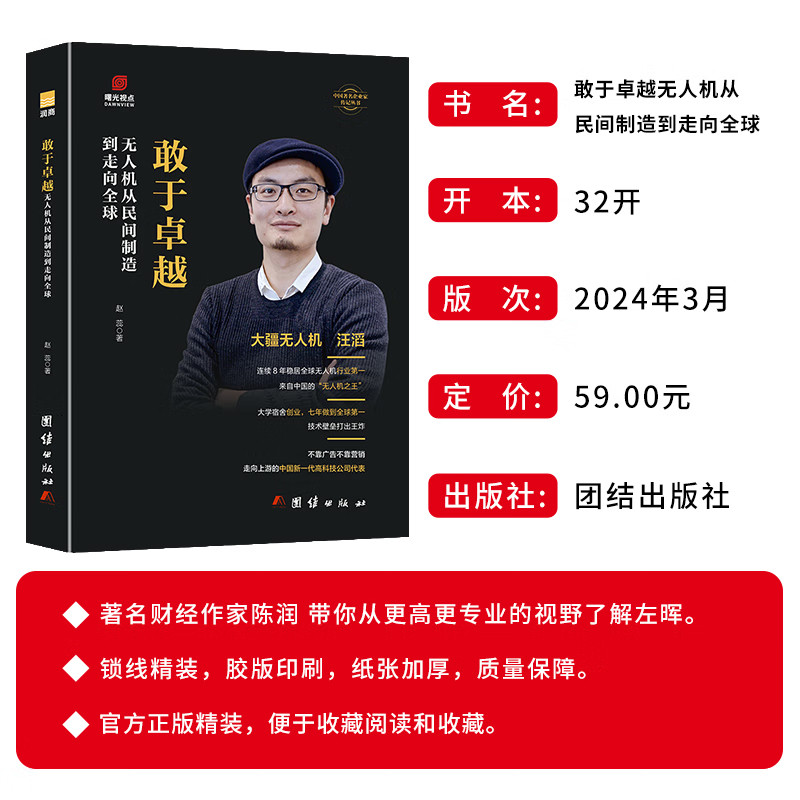 汪滔,大疆创新创始人兼CEO,是中国无人机领域的开拓者和全球科技创新的代表人物。他凭借对飞控技术的极致追求,将大疆从深圳一间民房起步的小团队,发展成为全球消费级无人机市场的绝对领导者。汪滔坚持“敢于卓越”的理念,以技术驱动产品,打破国外垄断,使中国智造走向世界。他的创业历程不仅是一部企业成长史,更折射出中国高科技企业在全球竞争中的崛起之路。作为财经界备受瞩目的商界风云人物,汪滔的故事被广泛收录于企业家传记与经营类书籍中,激励着无数创业者坚守初心、勇于创新,成为中国新一代企业家的典范。