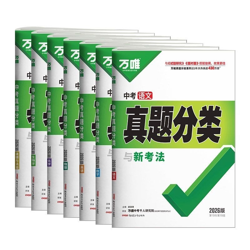 2026万唯中考《真题分类与新考法卷》涵盖数学、物理、化学、英语、语文、道法、历史、地理、生物等八九年级全学科,精选历年真题与优质模拟题,按知识点科学分类,精准对接新课标与中考命题趋势。丛书融合“新考法”理念,突出情境化、综合化与应用性题型训练,助力学生突破重难点。每科配备专项训练与综合模拟,讲练结合,强化应试能力。由万维教育资深教研团队精心编写,紧扣考纲,题型新颖,解析详尽,是初二、初三学生系统复习、高效备考的理想资料,全面提升学科素养与实战水平。