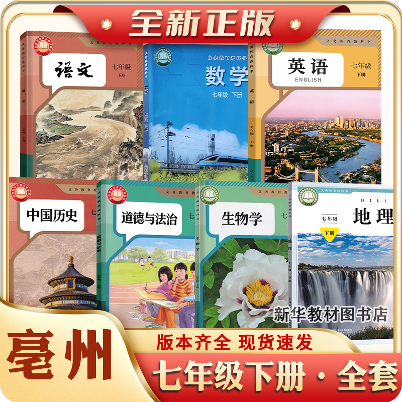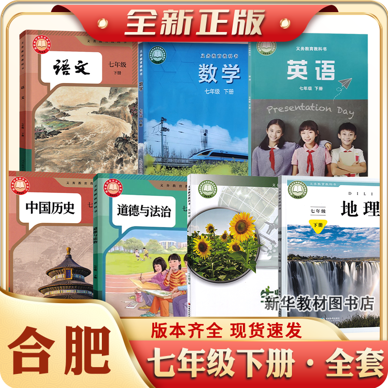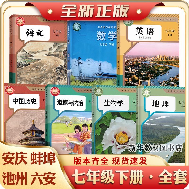 淘宝安徽专用2025适用正版初一17七年级上册下册全套课本教材教科书语文历史政治地理生物英语沪科版数学合肥芜湖7七上下课本全套教材