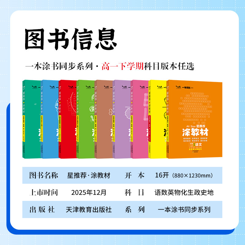 2026春涂教材版《高一下学期必修第二、三册》同步讲解丛书,涵盖语文、数学、英语、物理、化学、历史、地理、政治、生物九大学科,严格依据人教版新教材编写。本书紧扣课标要求,系统梳理基础知识,突出重点难点,配有典型例题与解析,帮助学生夯实基础、提升能力。内容结构清晰,讲练结合,注重知识点的归纳与拓展,适合高一学生同步学习与复习使用。无论是课堂巩固还是课后自学,都能有效辅助学生掌握核心考点,提升综合素养,为新高考打下坚实基础。
