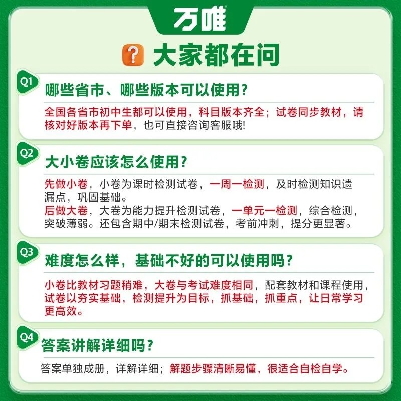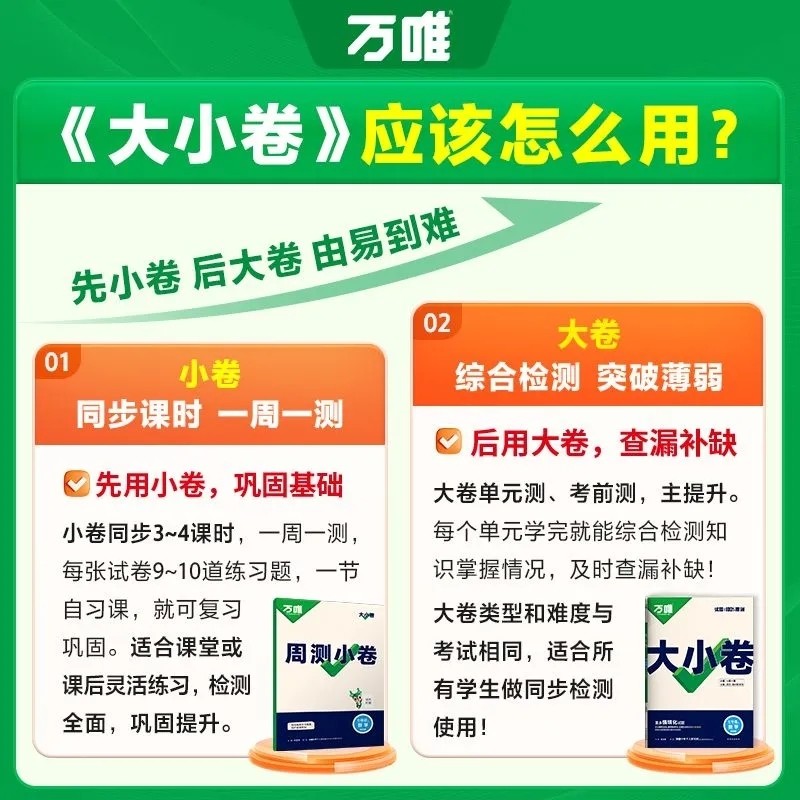 天猫2026版万唯大小卷七年级上下册试卷测试卷人教版八年级九年级必刷题同步教材语文英语小四门阅读练习新版化学大卷卷子初中听力名著