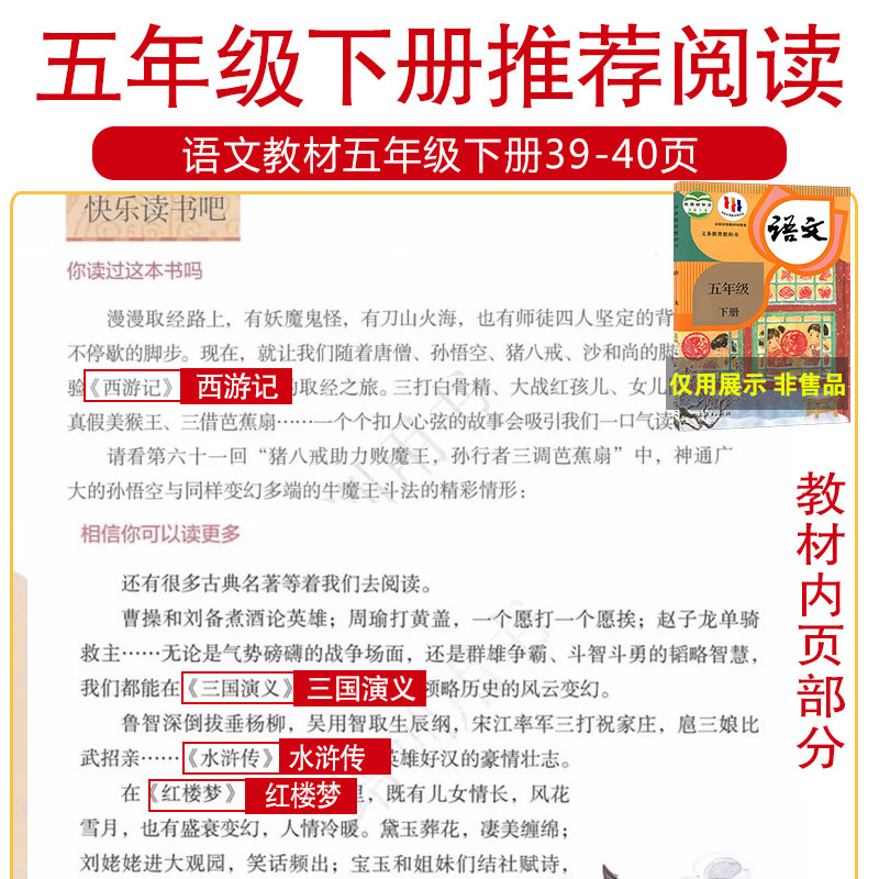 四大名著原著正版小学生版五年级下册必读的课外书籍阅读西游记三国演义红楼梦水浒传青少年配套人教版老师推荐快乐读书吧经典书目