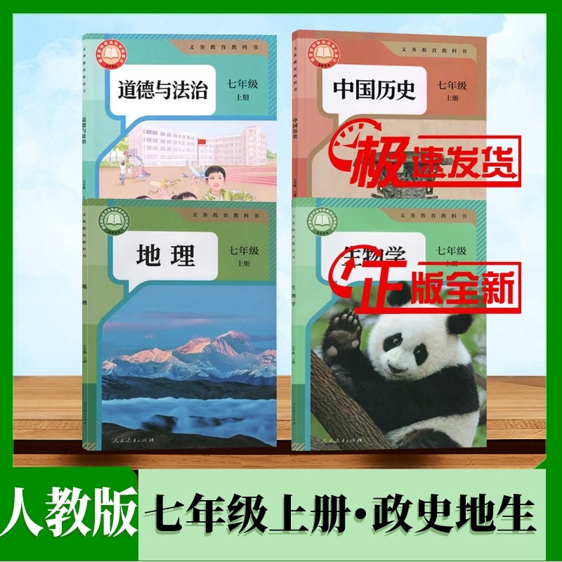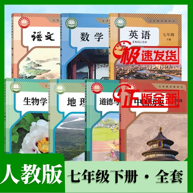 天猫2025新版正版初一上下册全套课本人教版7上下语文数学英语生物地理政治道德与法治历史书教材教科书人教部编版7七年级下册全套课本