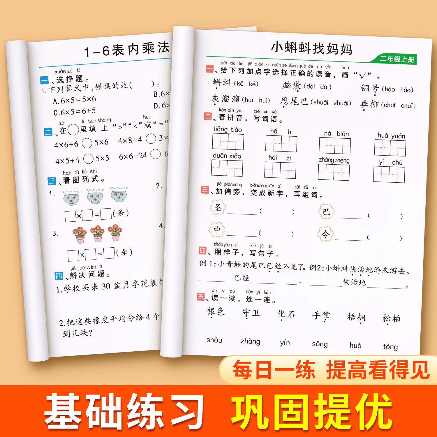 《二年级上册同步练习册语文数学全套》(人教版)紧扣部编版教材,严格按教学进度编排,一课一练,夯实基础知识。语文部分注重字词积累、句子训练与阅读理解,数学部分强化计算能力、应用题理解及逻辑思维培养。每课配有课堂专项练习题与单元测试卷,题型丰富,难度适中,兼顾基础巩固与能力提升。每日一练设计科学,帮助学生养成良好学习习惯。配套答案详解,便于家长辅导与自我检测。本套练习册是二年级学生同步学习、查漏补缺、提升成绩的理想辅助资料,助力孩子轻松掌握课本知识,稳步提高学业水平。