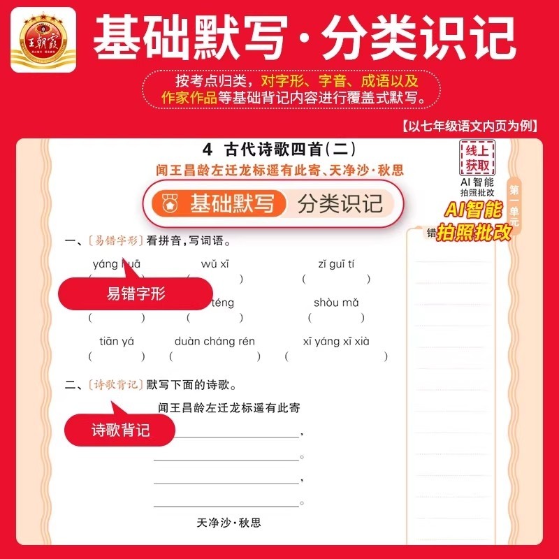 天猫2026春初中活页默写活页计算七八九年级下册上册语文数学英语政历地生人教版北师版初一二小四门同步专项训练练习题练习册必刷题