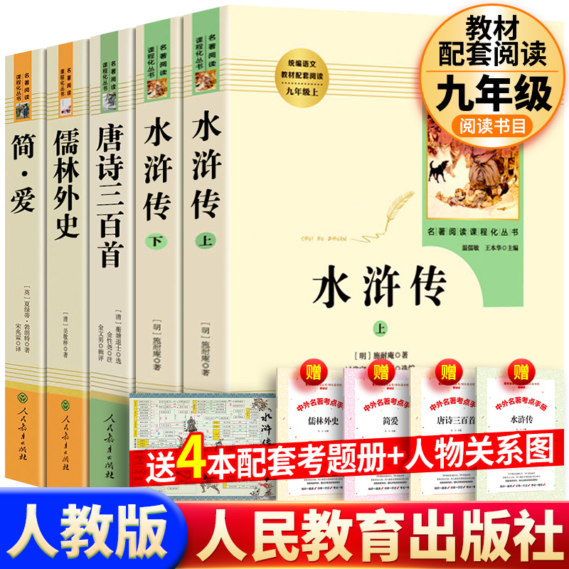 天猫唐诗三百首300首全集初中生七八9九年级上下册课外必读的名著阅读书籍简爱和儒林外史水浒传原著正版配套人教版书目人民教育出版社