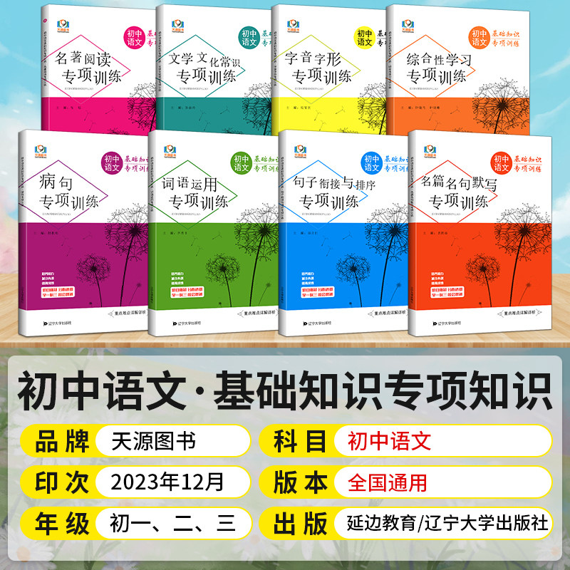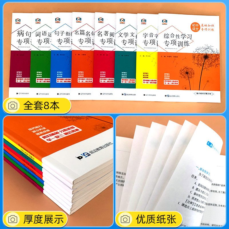 天猫初中语文基础知识专项训练全套七八九789年级词语运用病句修改字音字形名句名篇名著阅读文学文化句子训练常识综合性同步训练