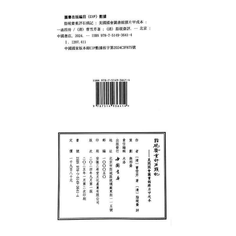 天猫正版 脂砚斋重评石头记 美国国会图书馆胶片甲戌本 宣纸 红楼梦 曹雪芹 脂砚斋评红楼梦 中国书店 四大名著 二印