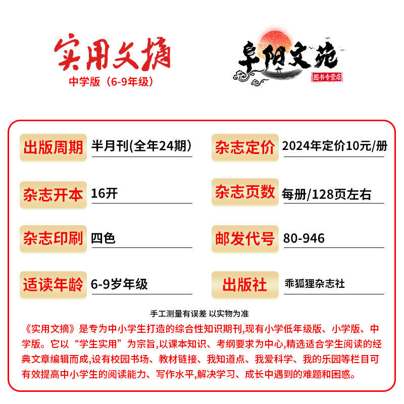 天猫【套餐可选】实用文摘中学版杂志2026年1月 新刊现货 初中生课外阅读作文素材语文学习知识期刊少年阅读全年订阅