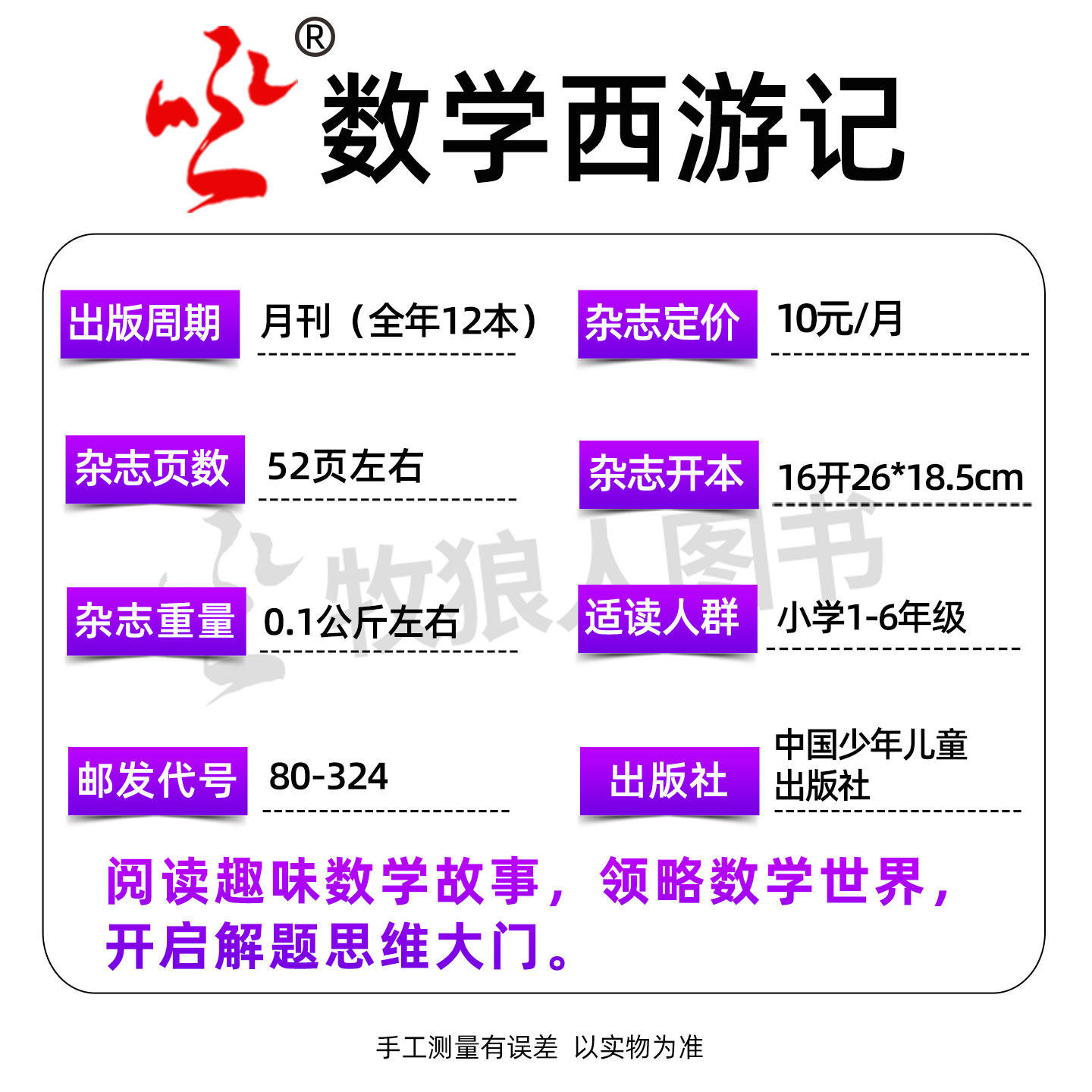 《数学西游记》是“我们爱科学”系列专为小学生打造的趣味科普连载故事,2026年1/2月刊(含2025年全年及2024年往期精选)将精彩延续。本书以西游记经典角色为引,巧妙融入数学逻辑、思维训练与科学知识,通过生动有趣的情节,引导孩子在阅读中掌握数学概念,提升逻辑思维能力。内容兼具知识性、趣味性与互动性,适合小学阶段学生课外阅读,是培养科学兴趣、激发学习热情的优质读物。非2023年过刊,均为近年份正版新刊,助力孩子在轻松氛围中爱上数学与科学。