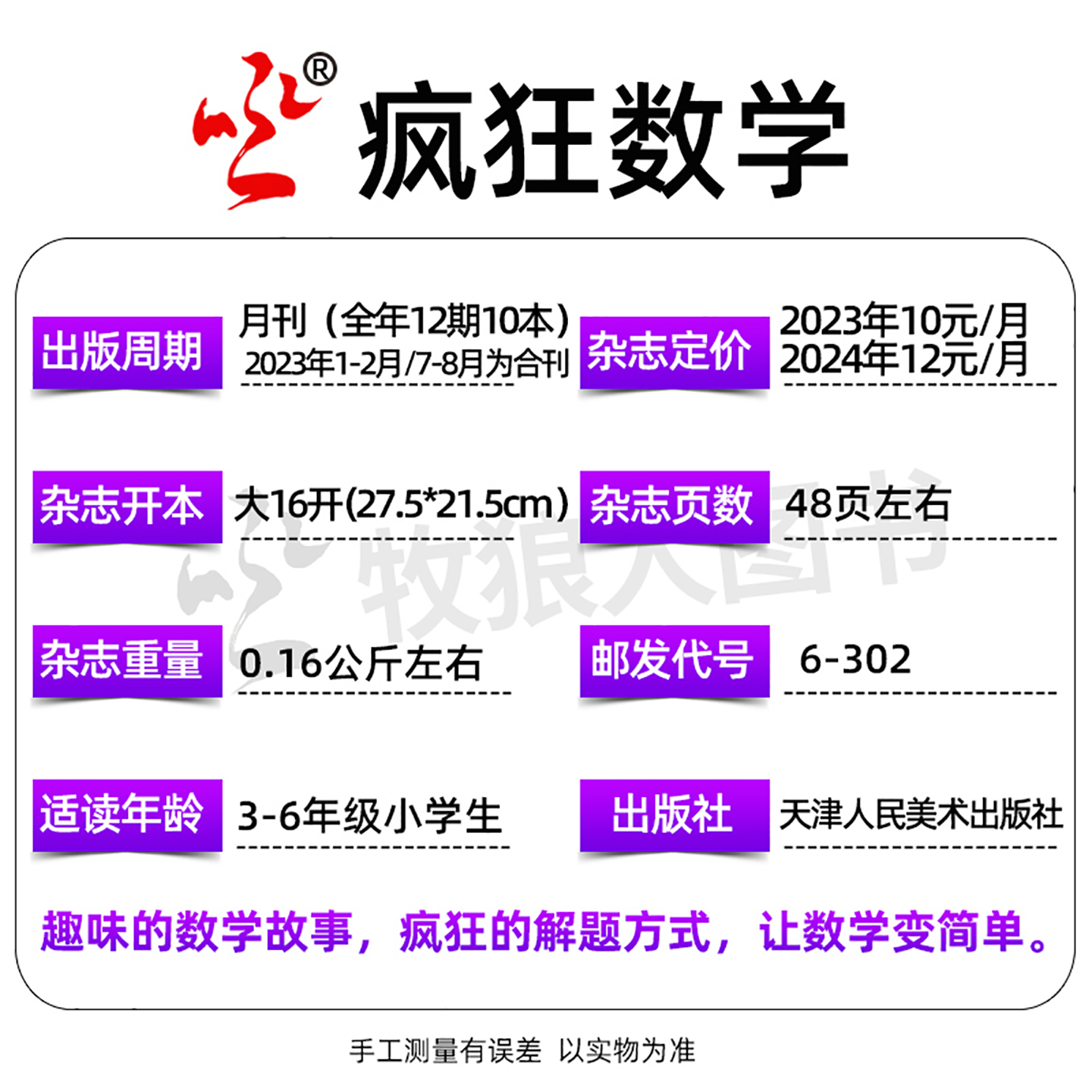 天猫疯狂数学杂志2026年1-2月【2025年1-12月/全年/半年订阅】儿童画报小学生中高年级三四五六年级逻辑趣味思维练习非2024年过刊