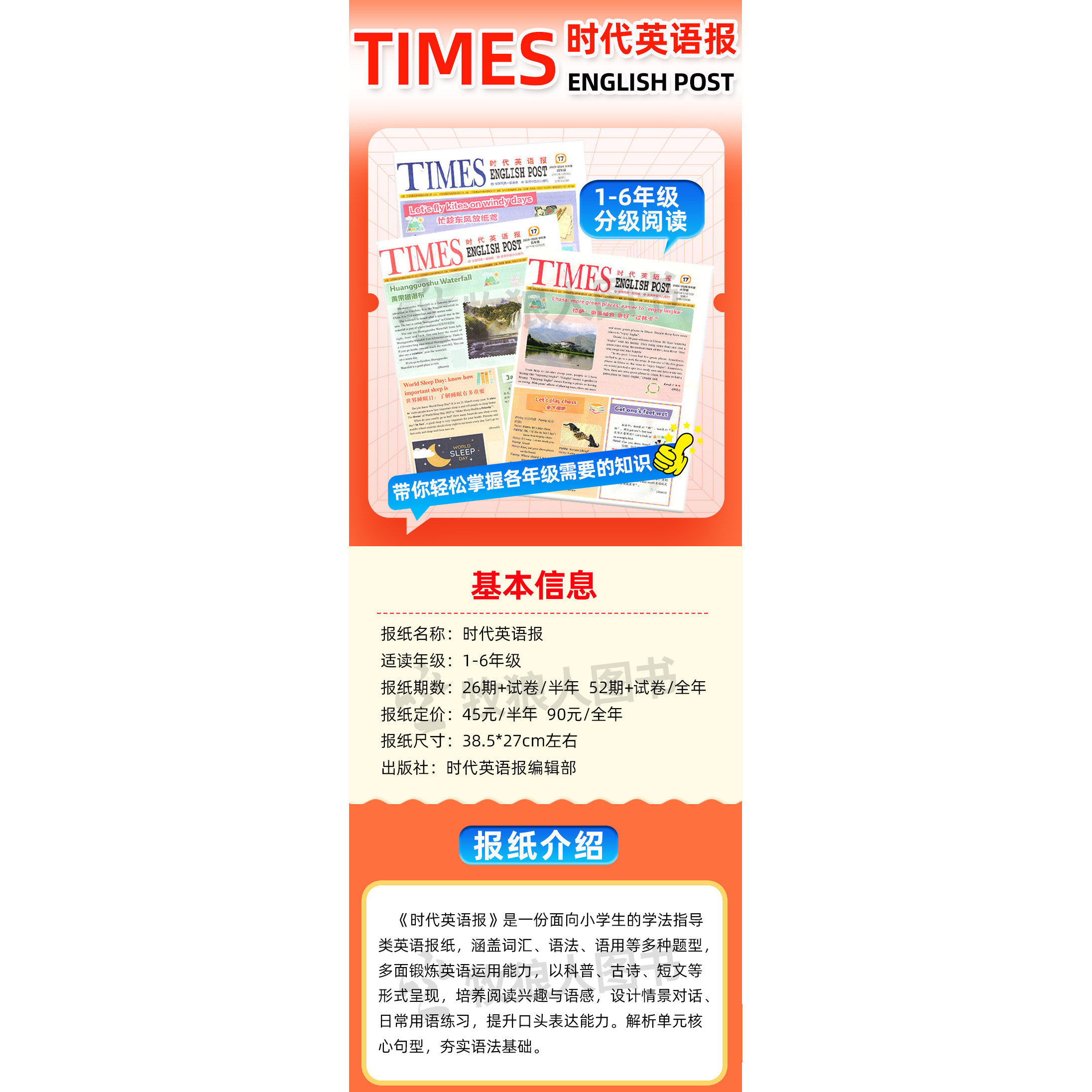 《时代英语报》(译林版)2026年春季/秋季学期配套试卷专为江苏地区小学1-6年级学生设计,紧扣译林版英语教材,内容同步课堂教学,助力学生夯实基础、提升能力。每期报纸配有精选练习题和阶段性测试卷,题型丰富,难度适中,注重语言运用与思维训练。报纸图文并茂,趣味性强,激发学生学习兴趣。订阅2026年学期版(非2025年),可获取最新教学资源与考试动态,是教师教学、学生自学及家长辅导的理想辅助资料。现面向江苏地区开放征订,欢迎学校、班级及个人按需订阅,共促英语素养全面提升。