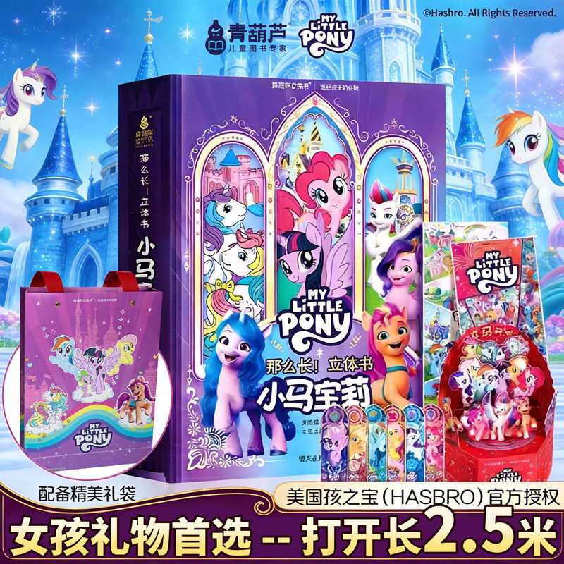 天猫青葫芦小马宝莉3D立体书儿童男女孩新年礼物0-8岁儿童点读版绘本马年礼物礼袋装美国孩之宝那么长立体书幼儿启蒙认知益智趣味科普
