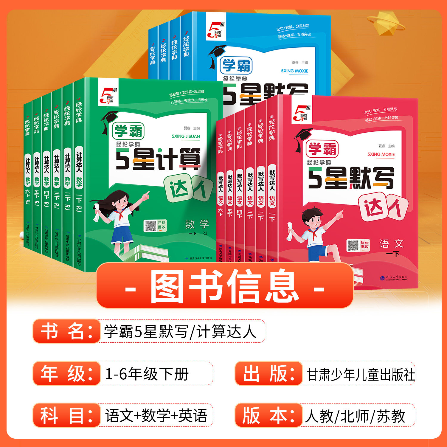 天猫2026春经纶小学学霸五星默写计算达人一年级二年级上册三四五六年级下册语文数学英语人教苏教北师版5星口算能手专项训练练习题