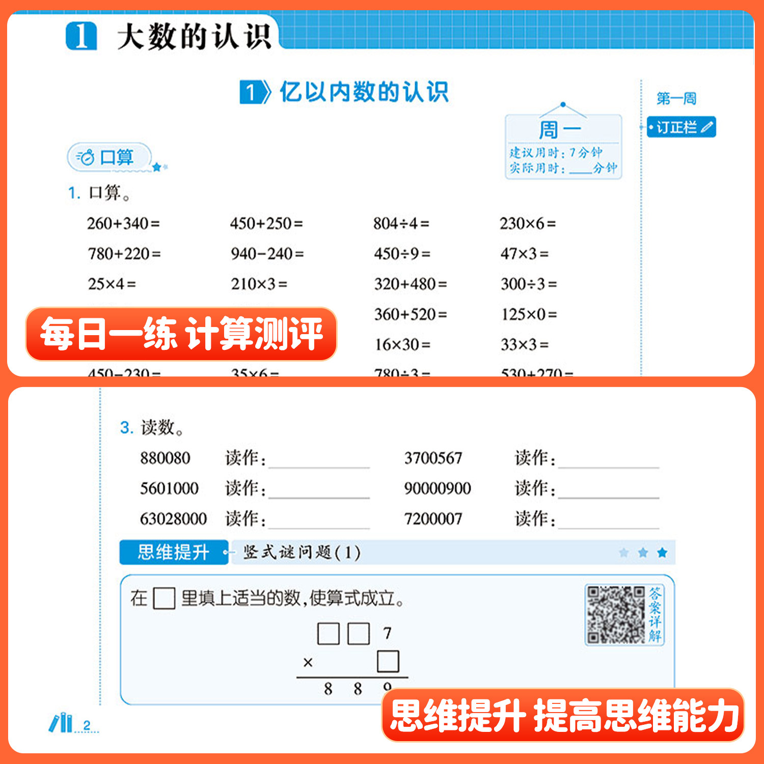 三年级口算天天练数学计算题强化训练上册下册口算题卡人教版同步练习乘法口诀横式脱式练习题每日一练竖式计算练习思维同步练习册