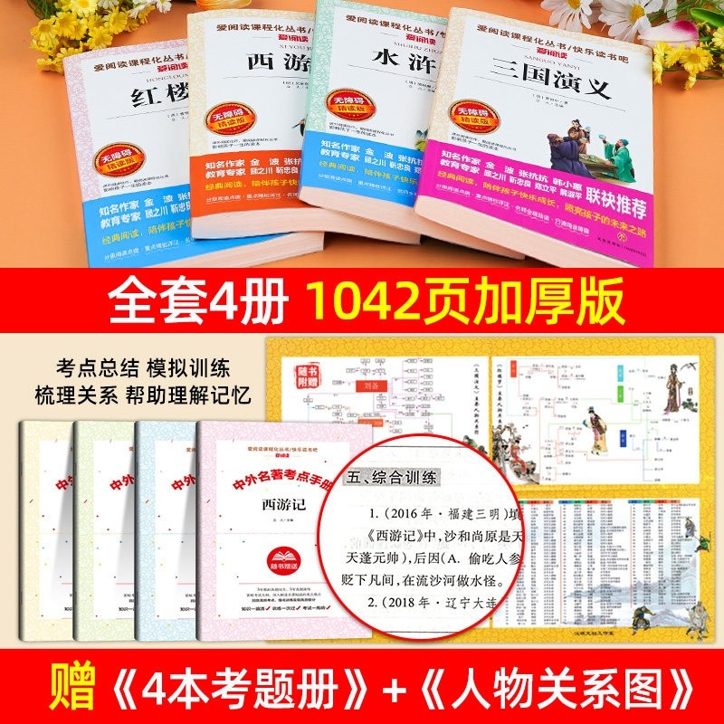 四大名著原著正版小学生版五年级下册必读的课外书籍阅读西游记三国演义红楼梦水浒传青少年配套人教版老师推荐快乐读书吧经典书目