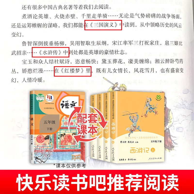 天快乐读书吧五年级下册人教版西游记红楼梦三国演义四大名著原著正版全套小学生版青少年版本非必读的课外阅读书籍人民教育出版社5