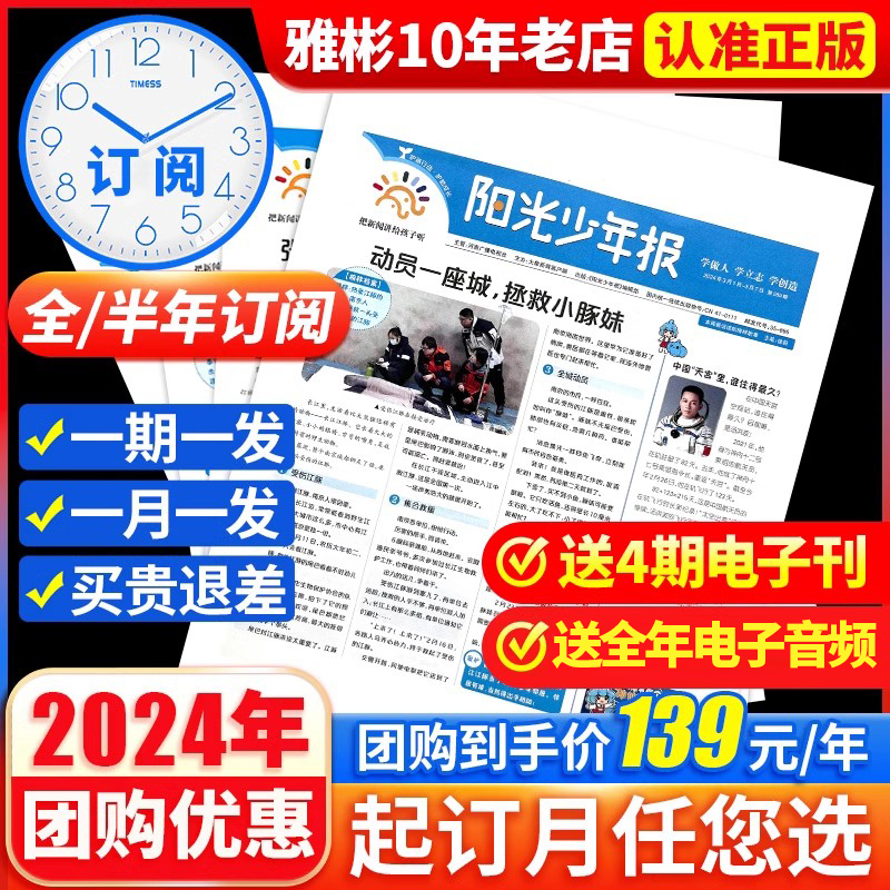 天猫阳光少年报杂志小学版/初中版大少年送音频2025/2026全年订阅2024年秋冬合订本1-6年级中小学生儿童作文素材报纸官方旗舰店过刊
