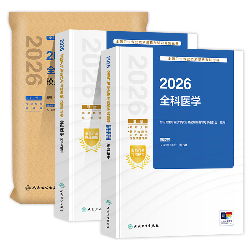 人卫版《2026全科医学主治医师考试指导教材同步习题集·模拟试卷》由人民卫生出版社权威出版,紧扣最新考试大纲,专为备战全科医学中级职称考试的考生打造。本书集教材同步习题、历年真题、高质量模拟试卷与押题精编于一体,内容覆盖全科医学核心知识点,题型全面,解析详尽,帮助考生夯实基础、熟悉命题规律、提升应试能力。题目设计贴近临床实际,强化重点难点训练,配套电子资源便于随时随地刷题。作为全国卫生专业技术资格考试的权威辅导用书,本书是广大全科医学考生高效复习、顺利通过考试的得力助手。