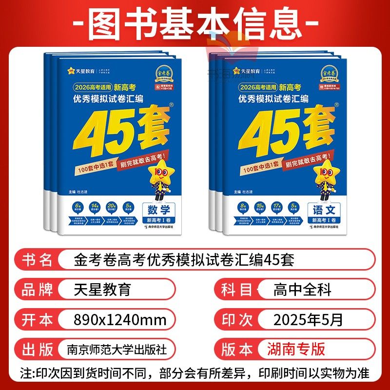 天猫湖南高考2026版金考卷45套2025高考模拟试卷天星高中数学英语语文物理化学生物政治历史地理真题卷高三一轮二轮高考总复习资料书