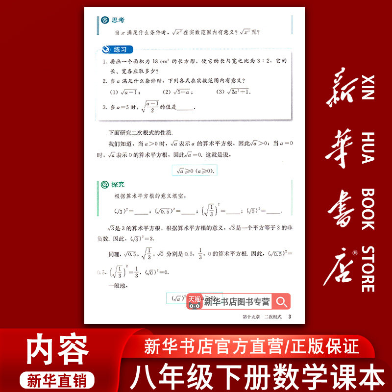 天猫【26春季新版现货】初中使用8八年级下册数学人教版课本8八下数学书人民教育出版社教材教科书初二2下学期八年级数学书下册课本