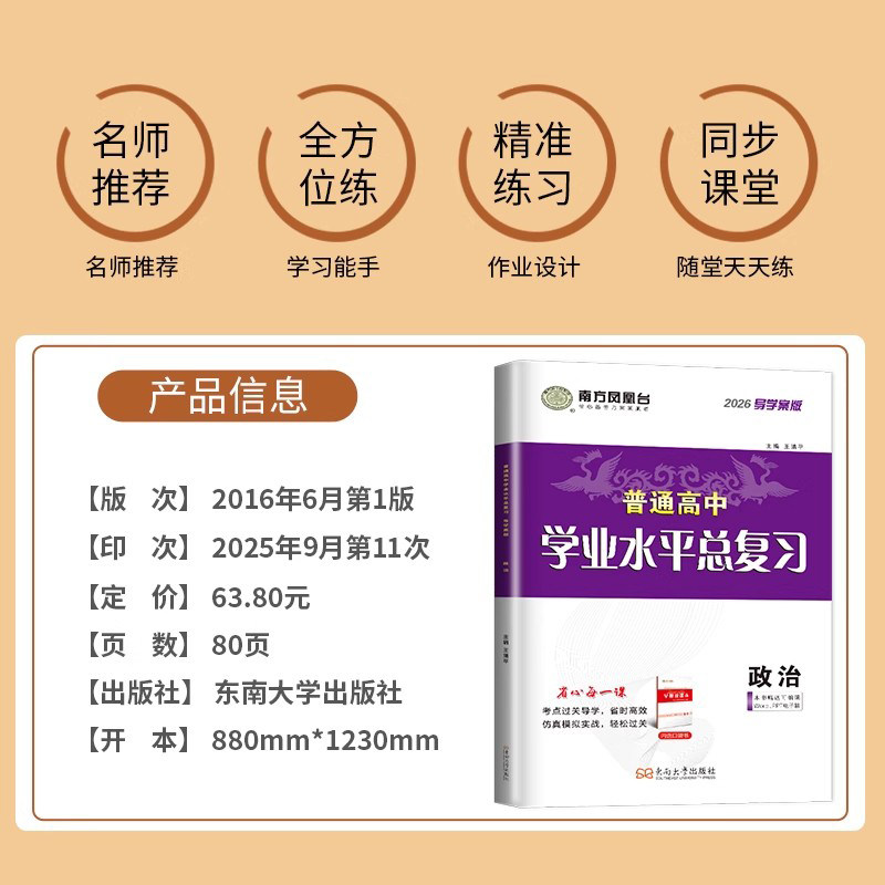 2026年江苏省普通高中合格性考试复习资料《南方凤凰台·学业水平测试总复习》,专为高二学生备战春季会考(小高考)设计。丛书涵盖物理、化学、地理、语文、数学、英语六科,紧扣最新课程标准与合格考大纲,精选历年真题与典型模拟题,题型全面、难度适中,注重基础知识梳理与核心能力训练。每科均配有详细解析与答题技巧指导,帮助学生高效查漏补缺、提升应试能力。本书适用于单招备考及合格性考试冲刺复习,是江苏高中生夯实基础、顺利通过会考的理想辅导用书。