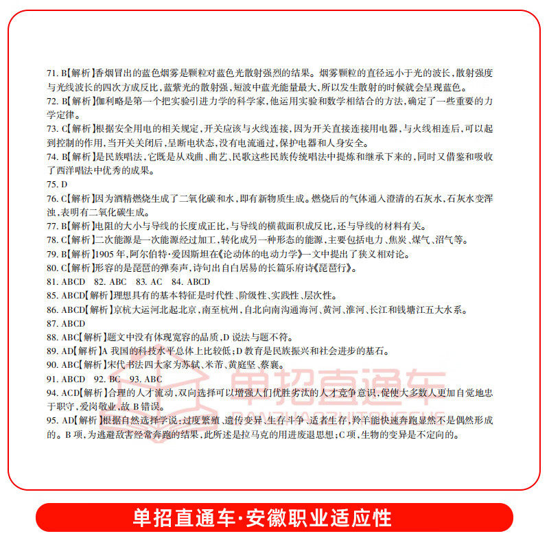 【安徽】2026年高职单招直通车春季升学考试知识点归纳及全真模拟试卷系列,专为安徽省高职分类考试考生精心打造。本资料系统梳理语文、数学、英语三科核心考点,涵盖基础知识、重点难点与高频题型;同时提供综合素质与职业适应性测试专项训练,强化逻辑思维、沟通表达与职业认知能力。配套全真模拟试卷紧扣考纲,题型、难度贴近真实考试,帮助考生熟悉流程、提升应试技巧。技能测试题库覆盖热门专业方向,注重实操与应用能力培养。内容权威、结构清晰,是考生高效备考、冲刺理想高职院校的得力助手。