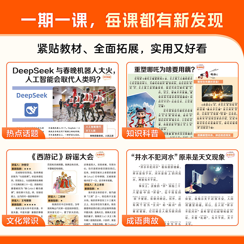 内容简介:该画报是一款针对小学生一二三四五六年级的同步课本阅读预习知识杂志。以少年报纸的形式呈现,全年订阅共52期。内容涵盖语文知识要点、深度解析、拓展阅读等,帮助小学生进行知识学习和巩固。适合课前预习和课后复习,提升小学生的阅读理解和写作能力。全新改版,提前预售,值得家长和孩子期待!