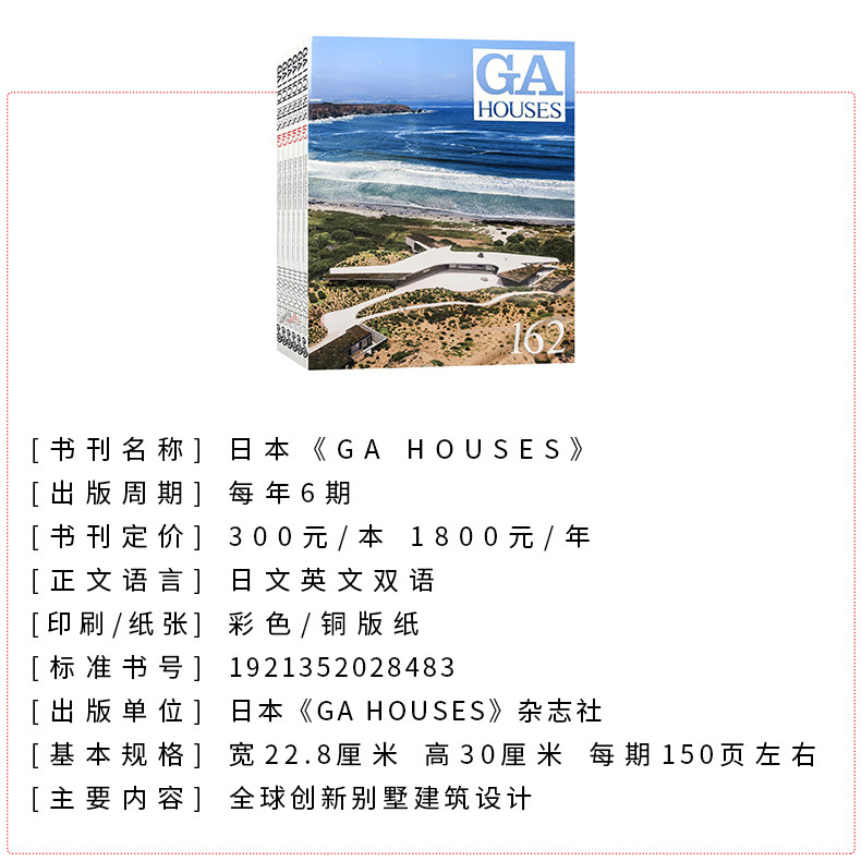 GAHOUSES(B18)是一本专注于全球高端别墅与住宅建筑设计的权威杂志,以精美的摄影、深度的设计解析和国际化的视野著称。现可订购2021年至2026年共6个年度全年刊(每年1期),也可根据需要单独选购某一年份的单期。该杂志汇聚世界各地顶尖建筑师的创新作品,涵盖现代、极简、生态、传统融合等多种风格,是建筑师、室内设计师及高端住宅爱好者不可多得的灵感来源。无论收藏还是专业参考,GAHOUSES皆能提供极具价值的视觉与思想盛宴。下单时请明确选择所需年份,灵活满足不同需求。