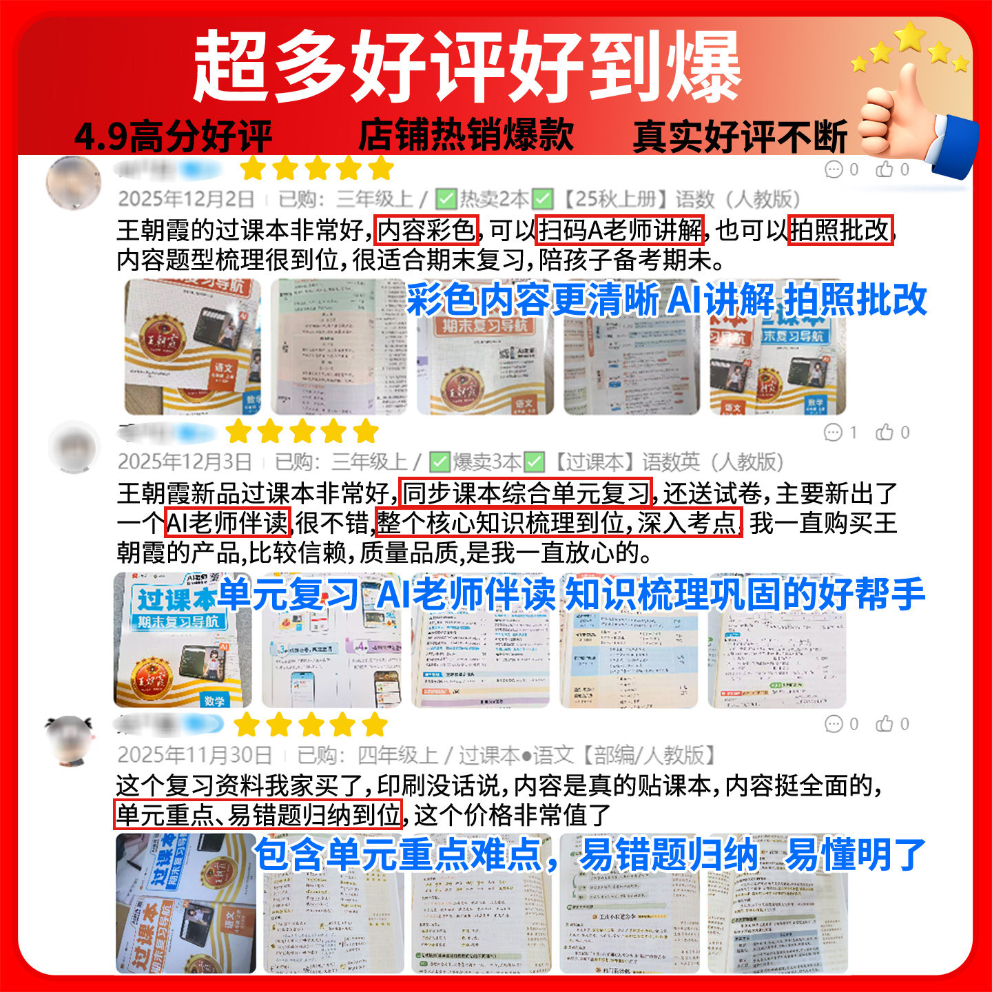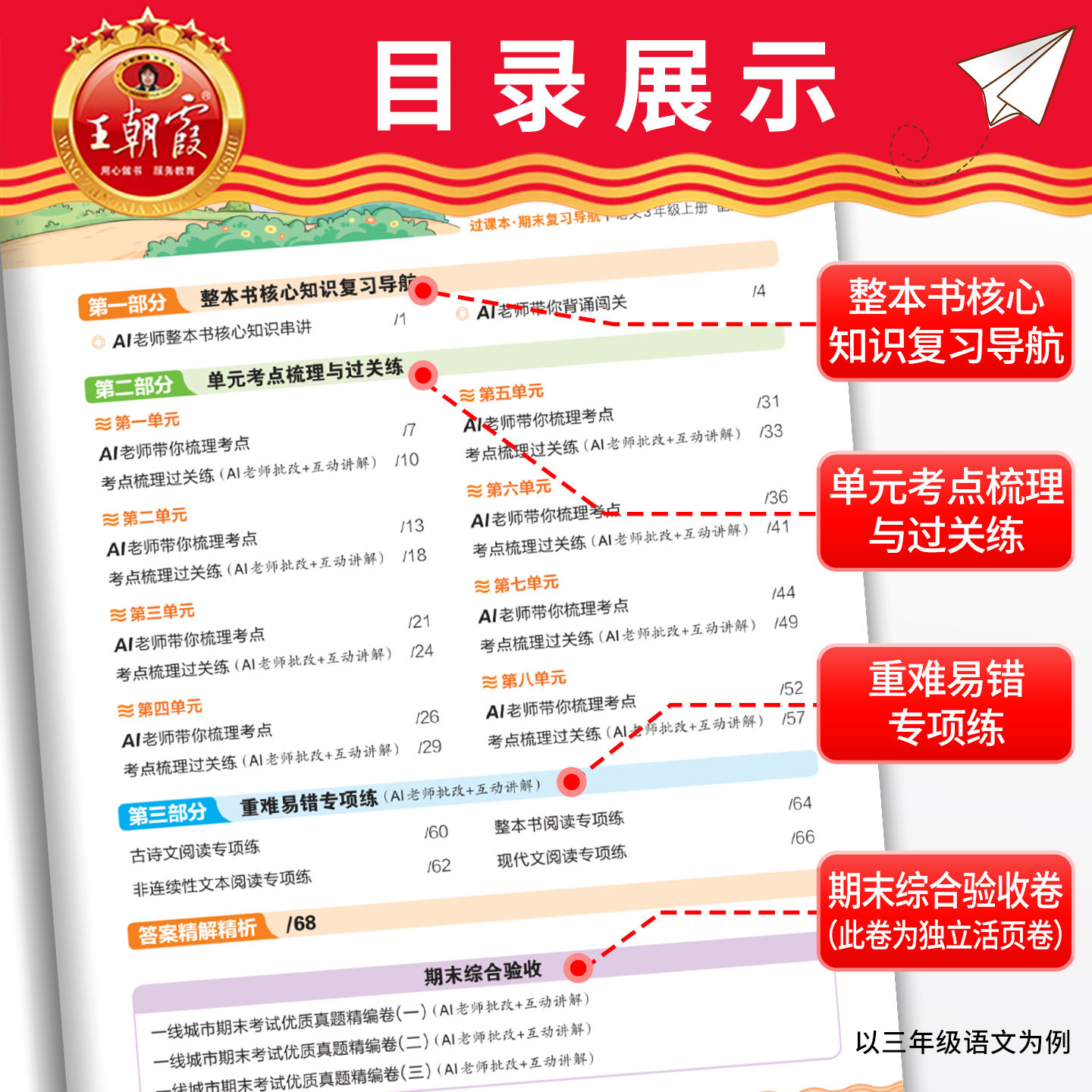 天猫2025秋王朝霞过课本期末复习三四五六年级一二年级上册期末考前复习备考语文人教北师苏教版数学英语AI老师辅导伴学期末冲刺卷