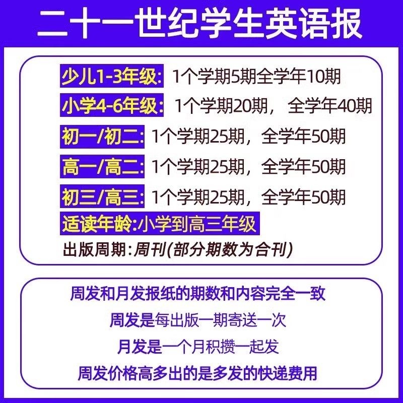 天猫21世纪英文报小学版/初中版/高中版杂志2025-2026年春秋季学期全年半年订阅/二十一世纪学生英语报纸初一二三高一二三少儿画刊过刊