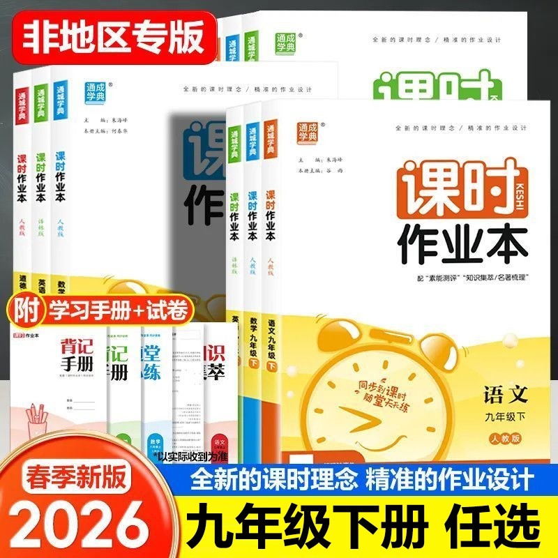 《课时作业本》2026春新版专为初中七、八、九年级下册设计,紧扣人教版语文、数学、英语教材,一课一练,同步巩固课堂知识。同时涵盖华师版物理、化学,湘教版历史、地理及外研版英语专版,版本齐全,适配多地教学实际。内容编排科学,题型丰富,注重基础与能力提升并重,配有详细解析,便于学生自查自纠。每课时设置梯度练习,强化重点难点,助力学生夯实基础、提升综合素养。适用于日常作业、课后复习与阶段检测,是初中生高效学习的得力助手。
