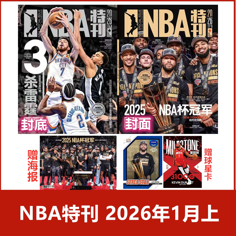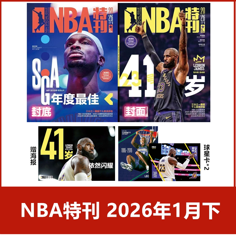 【现货速发】《NBA特刊》2026年1/2月合刊火热发售,同时推出《NBA巨星必杀技第二十辑》珍藏系列,涵盖2023–2025年经典内容回顾,深度解析詹姆斯、库里、东契奇等巨星招牌绝技。本期附赠精美球星海报,图文并茂展现赛场高光时刻。作为《体育扣篮》《灌篮》权威合作期刊,内容兼具专业性与收藏价值,涵盖战术分析、球星专访与赛季前瞻。现开启2026年全年订阅通道,每月准时送达,助力球迷紧跟NBA动态。无论是资深粉丝还是入门新手,这套期刊都是不可多得的篮球文化典藏,现货速发,即刻拥有!