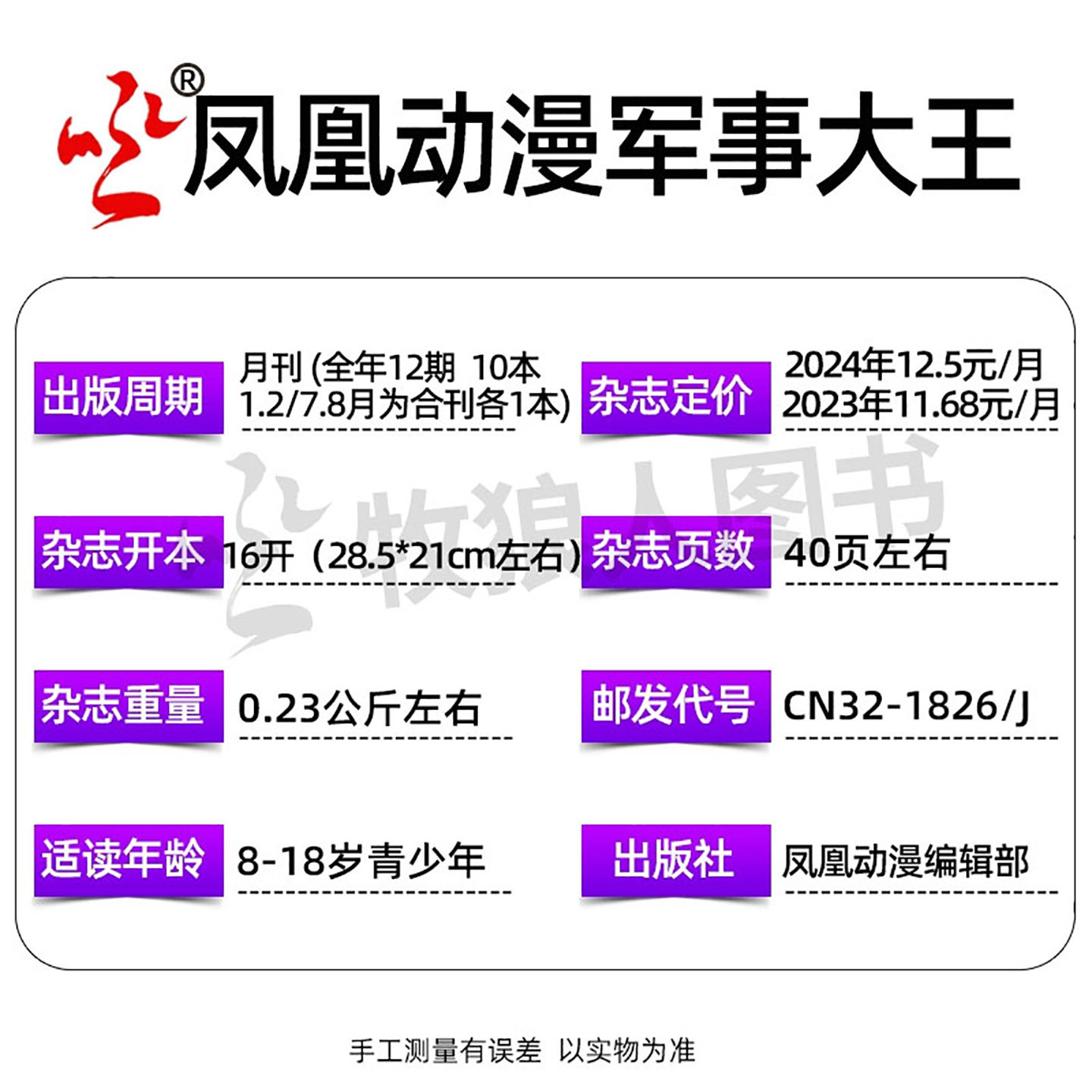 《凤凰动漫·军事大王》2026年1-2月合刊专为青少年军迷打造,融合趣味科普与军事知识,内容涵盖全球最新武器装备、经典战例故事、国防科技动态及军事百科趣闻。杂志以生动图文、漫画故事和互动栏目,激发小读者对军事科学的兴趣,兼具知识性与可读性。适合小学生及初中生阅读,是培养科学素养与爱国情怀的理想读物。现推出全年/半年订阅服务,亦可选购2025年往期珍藏。非过刊,正版发行,每月准时送达,助力青少年在轻松阅读中开阔视野,探索精彩军迷世界。