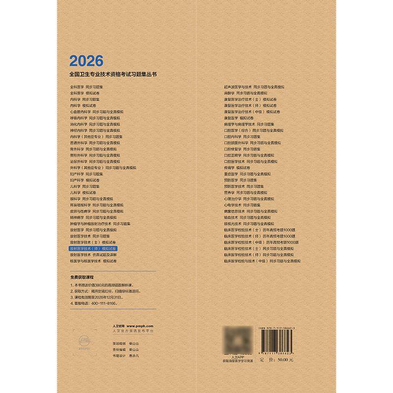 人卫版《2026放射医学技术师模拟试卷》由人民卫生出版社旗舰店官方出版,专为报考放射医学技术(专业代码206)的考生精心编写。本书紧扣最新考试大纲,涵盖放射影像技术核心知识点,包含多套高质量仿真模拟试卷,题型全面、难度适中,贴近真实考试场景。每套试卷均配有详细解析,帮助考生查漏补缺、掌握答题技巧。内容权威、结构清晰,是备考放射医学技术师职称考试的得力助手。通过系统练习,考生可显著提升应试能力,轻松通过考试。选择人卫正版教材,助您高效备考,顺利拿证!