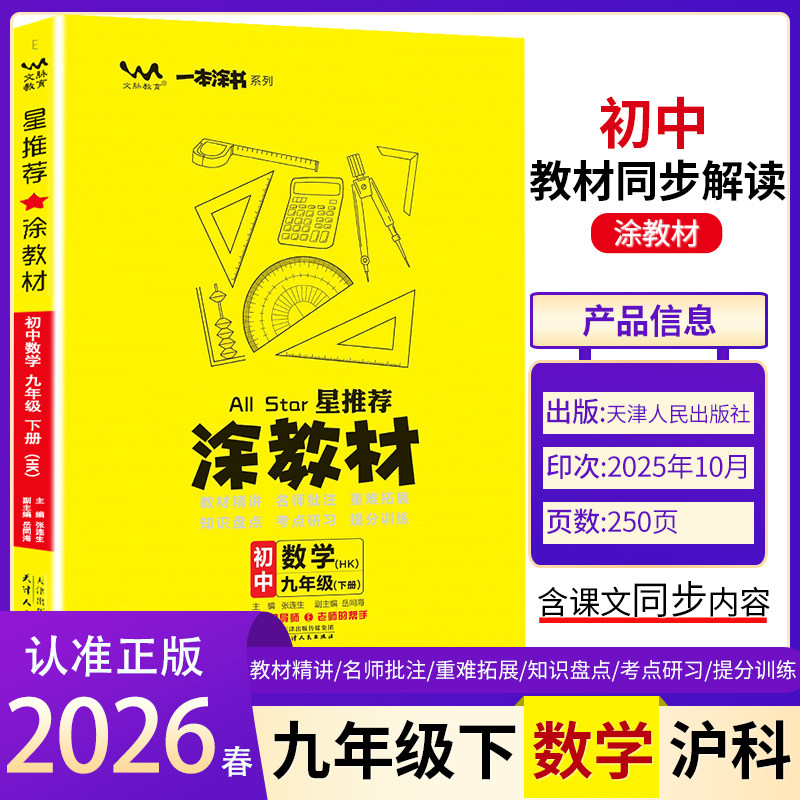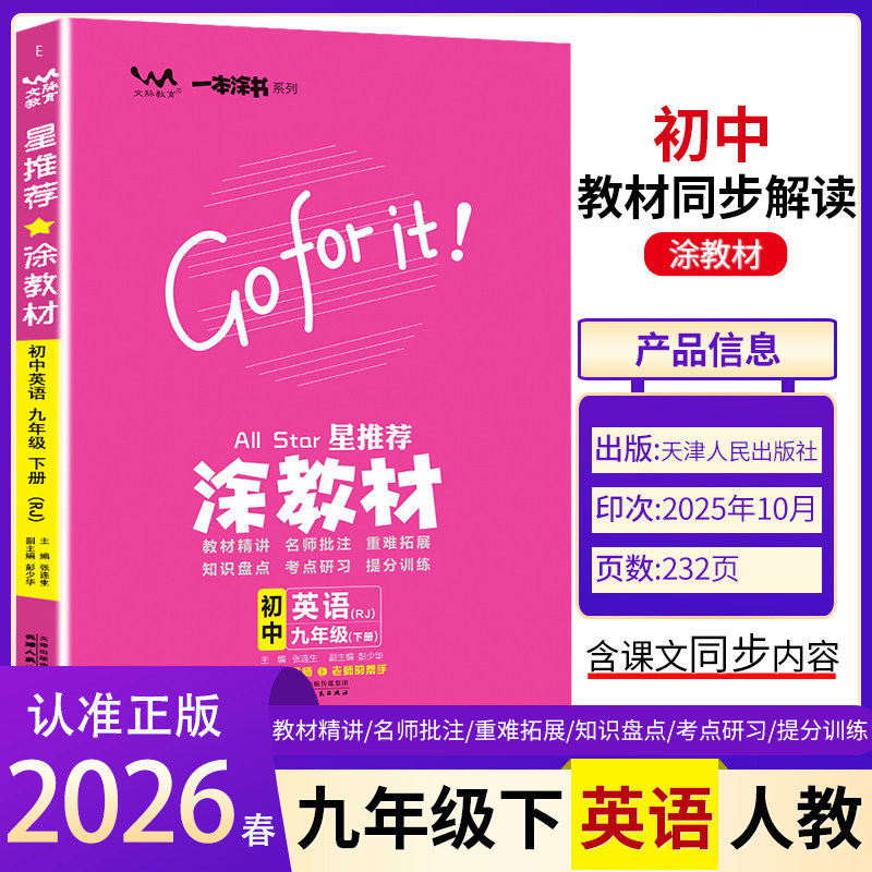 2026新版《涂教材》九年级上下册是一套专为初三学生打造的全科同步教辅资料,涵盖数学、英语、语文、物理、化学、政治、历史、地理等学科。本书紧扣最新课标与中考考纲,系统梳理九年级核心知识点,配有详尽的教材解读、典型例题解析及分层习题训练,帮助学生夯实基础、突破重难点。内容编排科学,讲练结合,注重思维拓展与应试技巧提升,是备战中考的高效辅导工具。无论是课堂同步学习还是课后复习巩固,《涂教材》都能为学生提供全面、精准的学习支持,助力中考成功。