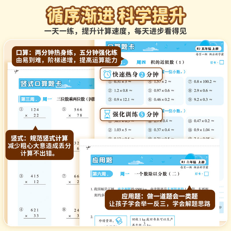 天猫北师人教版一年级二年级三年级四五六年级上册下册数学口算题卡速算竖式计算应用题天天练强化专项训练习数学思维训练同步练习题册