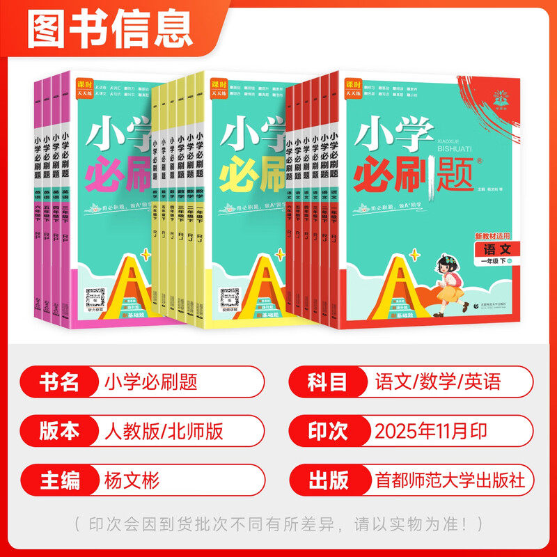 天猫2026春小学必刷题一年级二年级三四五六年级下上册语文数学英语全套人教版苏教版小学生同步练习题册课时作业本练习册小学必刷卷