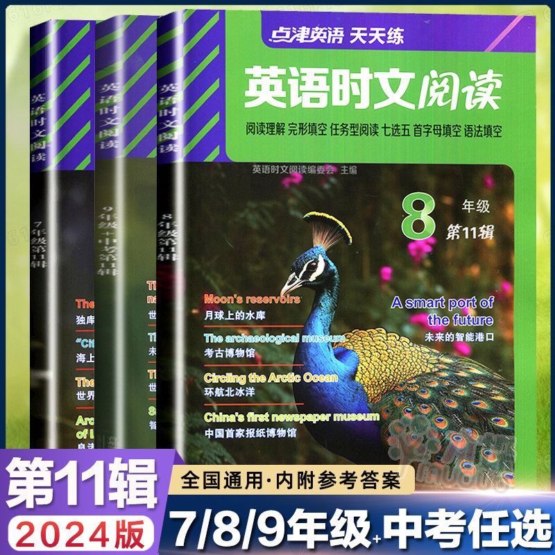 天猫【年级任选】2024版英语时文阅读七八九年级点津英语12辑11天天练初中中考英语阅读理解完形语法首字母填空强化训练习题册正版