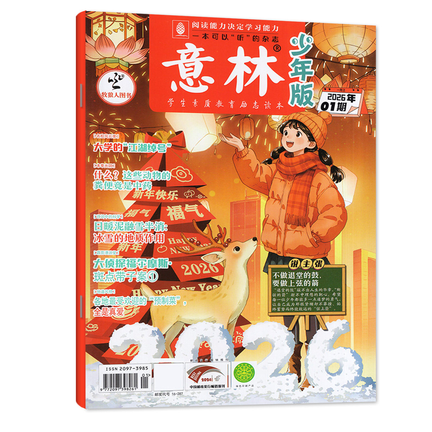 《意林少年版》2026年4月下(第8期)专为小学三至六年级及初中生打造,精选优质作文素材、国学经典、科学趣闻与成长故事,内容生动有趣、寓教于乐。本期涵盖励志短文、写作技巧、传统文化解读及前沿科学知识,助力提升阅读与写作能力。杂志排版清新,图文并茂,适合青少年独立阅读。提供单本购买,亦支持2024全年、2025年1–24期、半年或全年订阅,非过刊,品质保障。无论是积累素材、拓宽视野,还是培养思辨能力,《意林少年版》都是孩子课外阅读的理想之选,陪伴少年在阅读中收获智慧与成长。