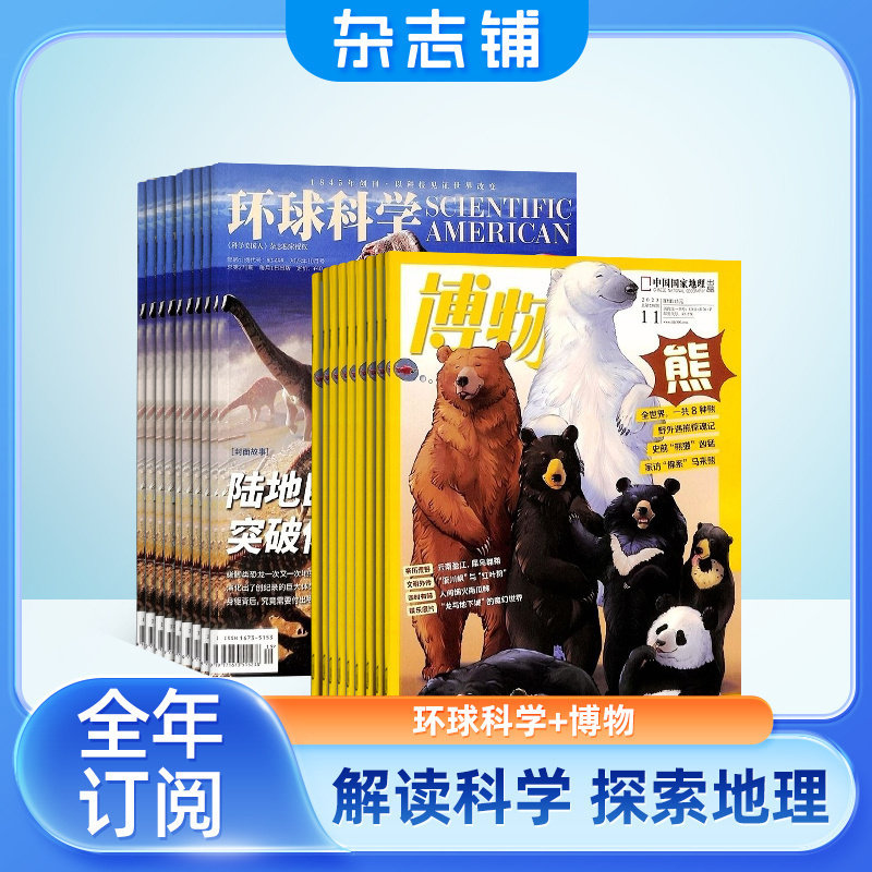 【包邮】《博物》+《环球科学》组合杂志订阅,2026年1月起订,全年共24期,专为青少年打造的高品质科普期刊。内容涵盖自然探索、科技前沿、宇宙奥秘与人文发现,兼具趣味性与科学性,激发孩子的好奇心与探究欲。《博物》以生动图文展现大千世界,《环球科学》精选国际顶尖科学资讯,双语拓展视野。适合中学生及小学高年级学生阅读,是提升科学素养、拓展知识边界的理想读物。杂志铺直供,正品保障,全国包邮,订即赠精美科学主题礼品。让科学不再遥远,陪伴孩子开启智慧成长之旅。